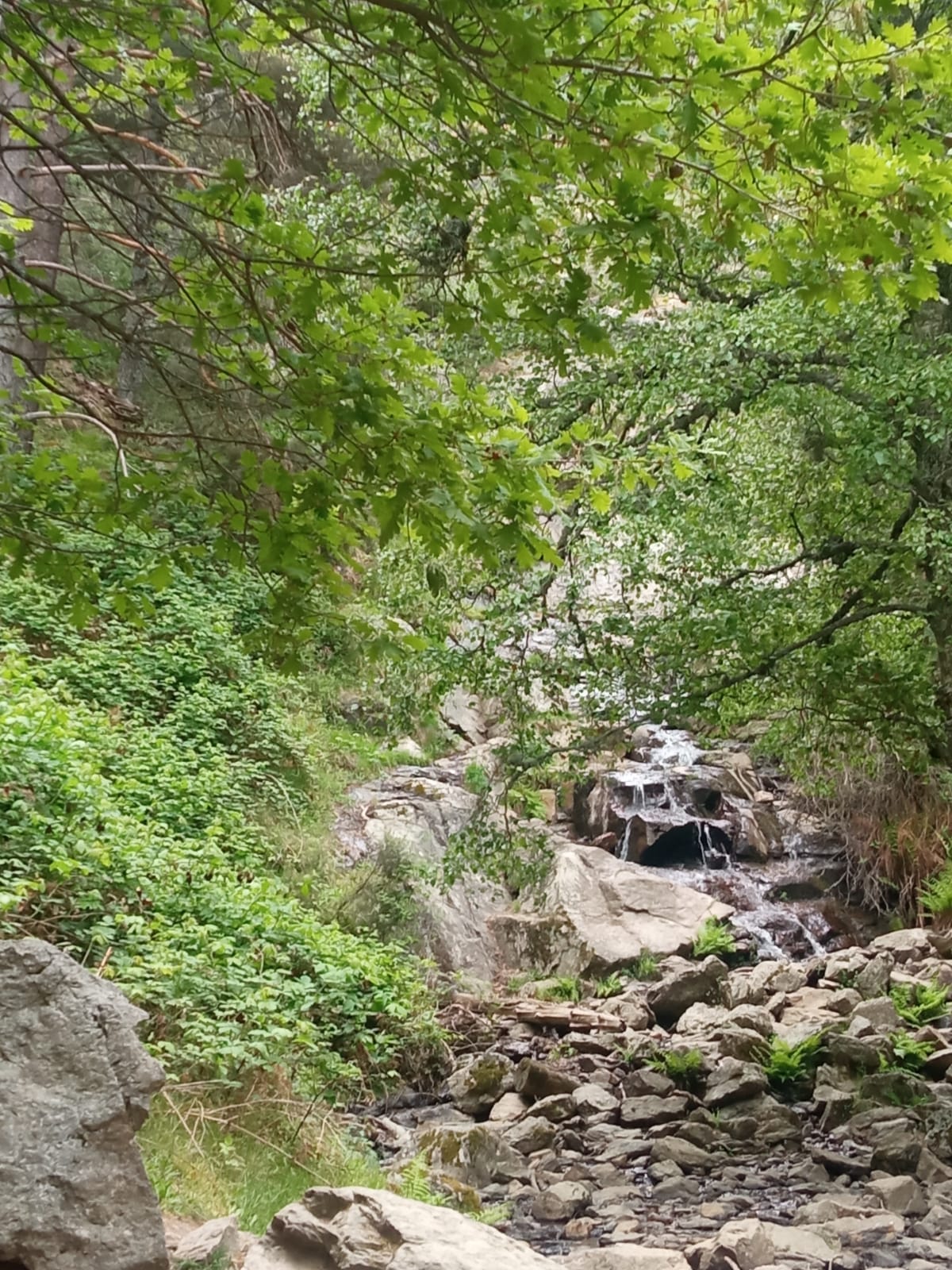 Mientras disfrutamos de varios ejemplares de abeto de Douglas, acebos y abedules, pinos de Oregón y algún pequeño tejo, ¡el tejo singular está por llegar! ¡Hay que seguir caminando un poco más!🚶🚶♀️ La vereda recorre el pinar descendiendo suavemente hasta llegar al mirador de la Chorrera, una cascada gigantesca que te dejará de piedra, muy bonita. Los helechos y los musgos son los protagonistas de esta etapa del camino. Merece la pena adentrarse por ese camino y darse de bruces con un gran acebo que tendrás que pasar agachado y llegar (metido entre los árboles del bosque). Muy poco después llegaremos al impresionante Tejo centenario, reconocido como árbol singular. Mi recomendación es dejarlo todo y sentarte a observar el tejo como si se hubiera parado el tiempo⏳ ¡es espectacular!