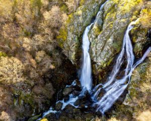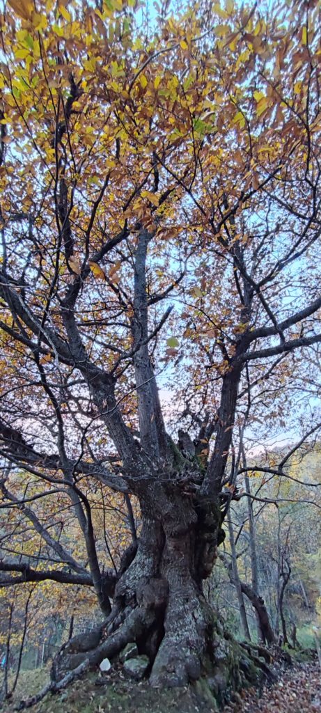 Mientras disfrutamos de varios ejemplares de abeto de Douglas, acebos y abedules, pinos de Oregón y algún pequeño tejo, ¡el tejo singular está por llegar! ¡Hay que seguir caminando un poco más!🚶🚶♀️ La vereda recorre el pinar descendiendo suavemente hasta llegar al mirador de la Chorrera, una cascada gigantesca que te dejará de piedra, muy bonita. Los helechos y los musgos son los protagonistas de esta etapa del camino. Merece la pena adentrarse por ese camino y darse de bruces con un gran acebo que tendrás que pasar agachado y llegar (metido entre los árboles del bosque). Muy poco después llegaremos al impresionante Tejo centenario, reconocido como árbol singular. Mi recomendación es dejarlo todo y sentarte a observar el tejo como si se hubiera parado el tiempo⏳ ¡es espectacular!